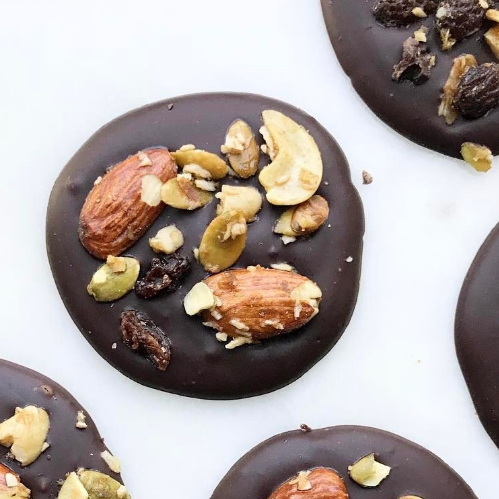 Ingredientes : 1 Tableta de chocolate negro 85% Almendras o anacardos Pipas Pasas o arándanos Preparación: Derretimos el chocolate 85% al…